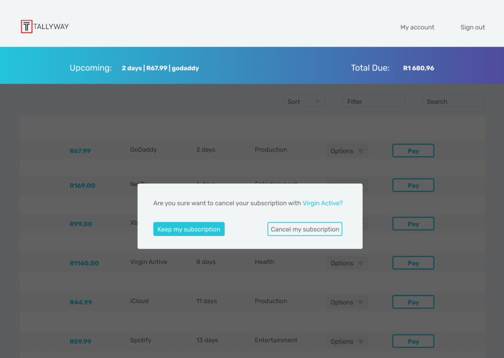 Tallyway is a financial management tool that enables users to manage subscriptions and receive notifications when a bill is due. users can monitor subscriptions and cancel unwanted subscriptions.