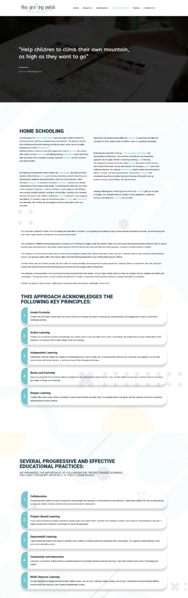 The Growing Patch, a homeschooling support platform for children, needed a website that clearly communicated their educational approach while making it easy for parents to understand the program and enquire.
